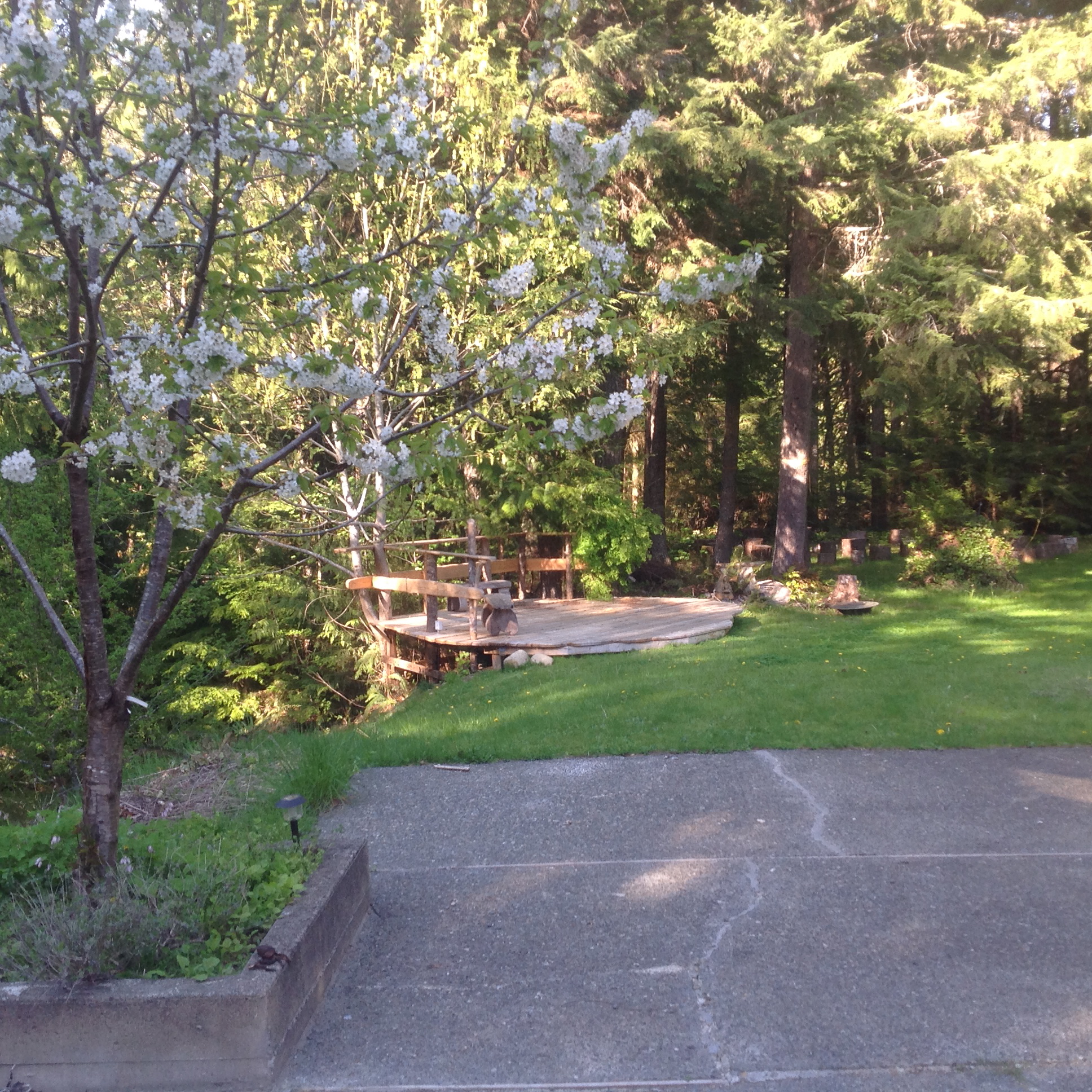 We finished redoing the cold tub deck. It overlooks the Koksilah river and is the perfect place for tea time on sunset.